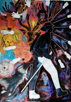 L'artiste nous emporte dans l'univers métaphysico-poétique de l’enfance sous le signe de l'énigme et du sourire. A la recherche d’un monde perdu, elle élabore des visions comme sorties d'un rêve, dans la rencontre avec le cosmos et ses étoiles, avec des animaux sauvages plus ou moins domestiqués, des enfants-soleil, une femme-lune, des hommes-paysage, etc.